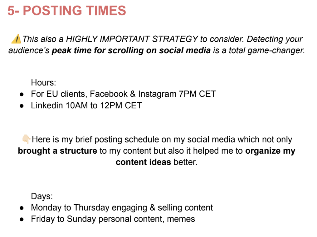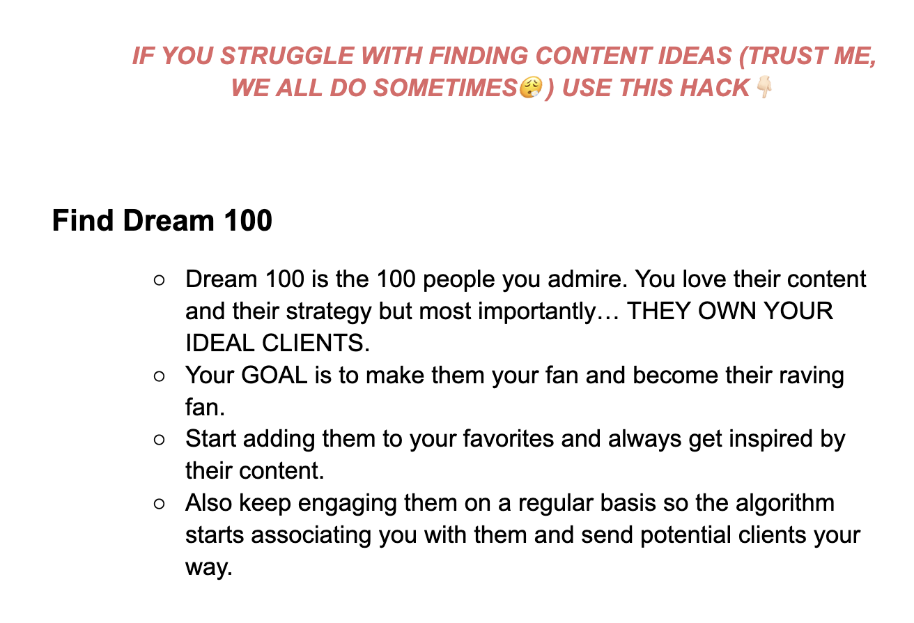 Needy-greedy details of latest trends on social media marketing including posting times, hooks, and captions so that you can count on 5-10 high ticket leads per week through social media, in a nun-pushy, feminine way