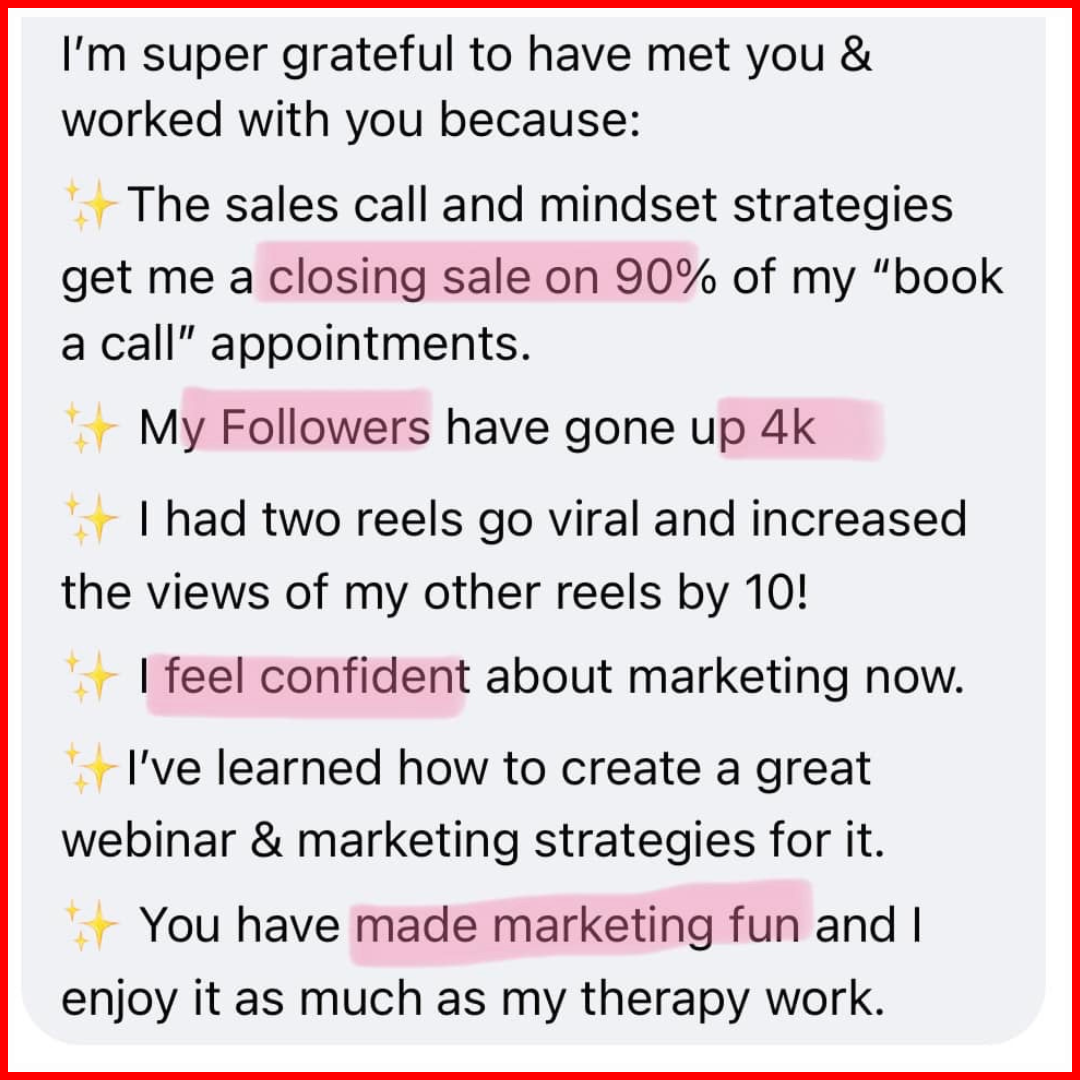 I help heart-led entrepreneurs create social media systems that bring in leads on autopilot, consistently closing soulmate clients and hitting revenue goals without overwhelm.